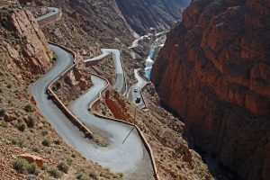 After lunch near the kasbah, you pass through Ouarzazate, known as the “Gateway to the Sahara,” and drive along the scenic Road of a Thousand Kasbahs. Palm groves, fortified villages, and red-rock landscapes dominate the scenery as you enter the stunning Dades Valley, famous for its dramatic rock formations and winding canyon roads.